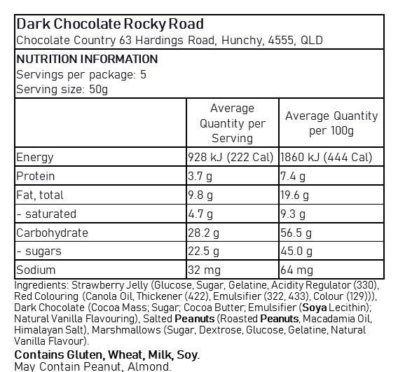 Chunky marshmallow, jellies and peanuts, smothered in dark chocolate