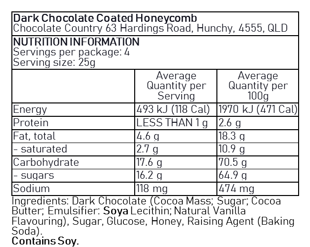 Chocolate Country famous Honeycomb made in store using local honey, half coated in Belgian Dark Chocolate
